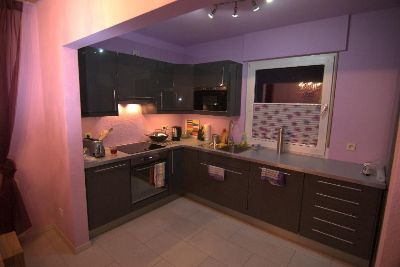 neue Küche mit allen Schikanen, Geschirrspüler, Microwelle, großer Kühlschrank, alle elektrischen Geräte vorhanden, Töpfe, Geschirr, Besteck usw.
